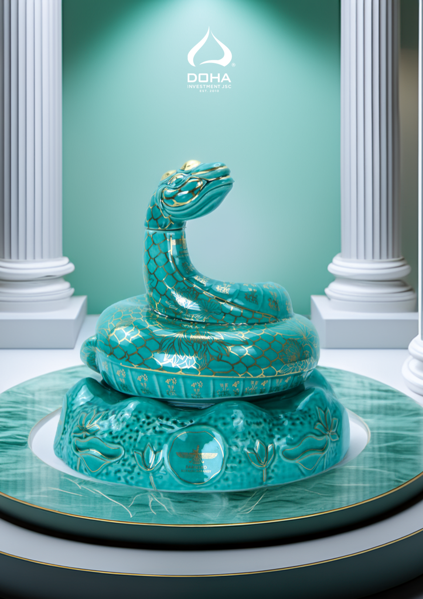 • Exquisitely crafted design: The bottle is crafted from high-quality fire-glazed ceramic, covered with splendid gold on the outside, creating a luxurious and noble beauty. The image of the snake is gracefully shaped, symbolizing protection and prosperity.