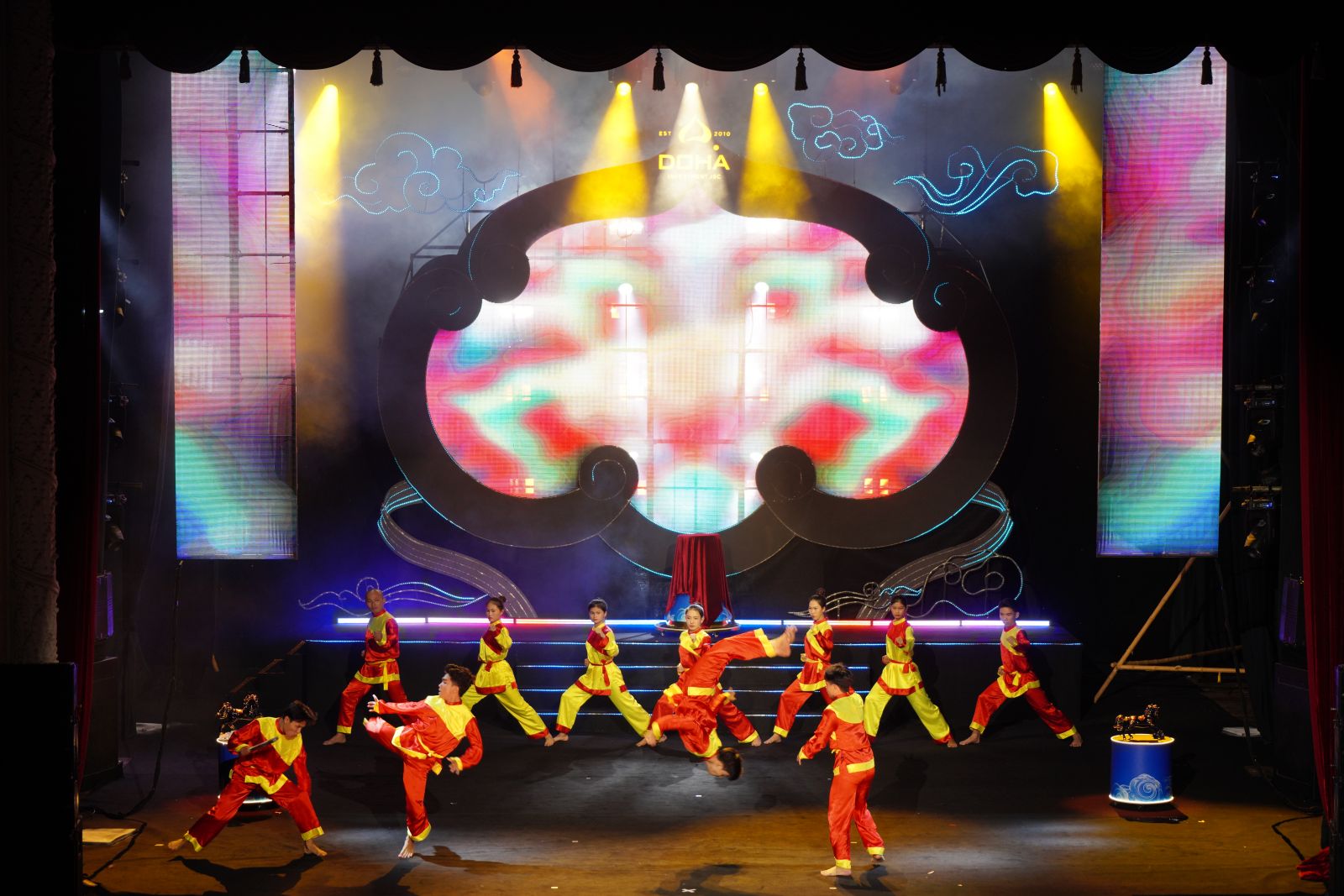Điểm nhấn của chương trình là tiết mục võ nhạc Tây Sơn kết hợp múa cổ và hiệu ứng LED. Nhịp trống dồn dập, động tác dứt khoát tái hiện khí phách cha ông, đồng thời phản ánh tinh thần “son sắt” mà DOHA theo đuổi. Xen kẽ là màn múa sen dân gian đương đại, mang đến sự mềm mại, thanh khiết, gợi nhớ nét đẹp văn hóa truyền thống.