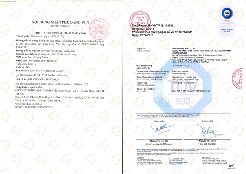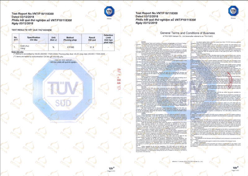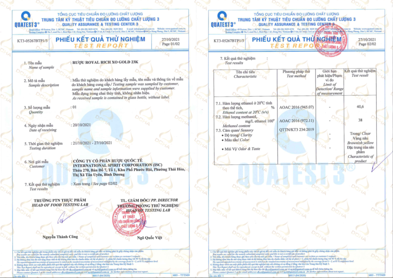 Phiếu kiểm nghiệm rượu Royal Rich XO Gold 23K:
