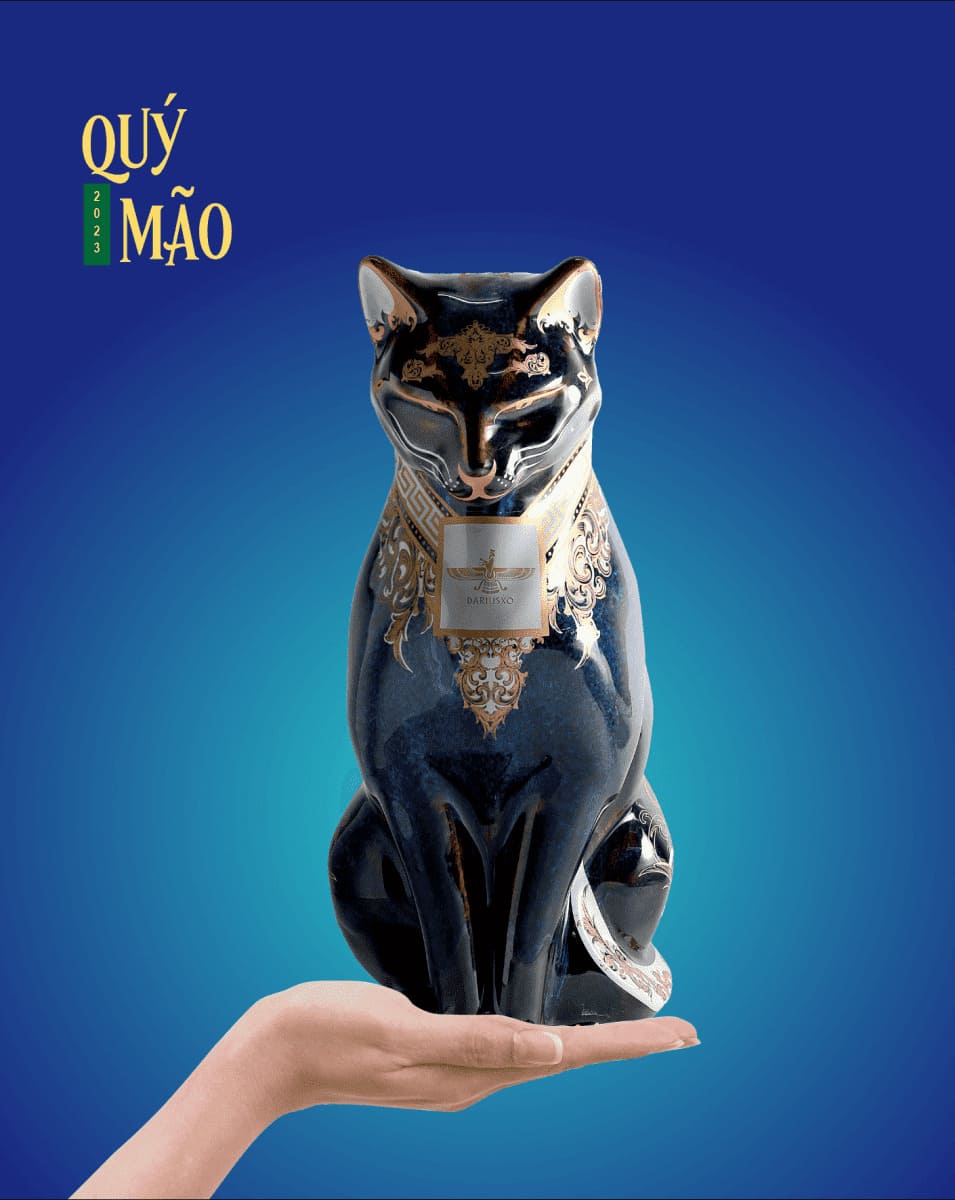 Rượu Mèo Vàng Ai Cập Royal Darius XO Gold 23K 2023 là sản phẩm kết hợp giữa rượu Brandy XO từ tập đoàn Slaur Sardet Pháp cùng vảy vàng 23K nhập khẩu từ Đức tạo nên vị rượu thơm nồng chạm đến từng xúc giác. Cùng thiết kế chất liệu gốm sứ hoả biến được chế tác thủ công được điểm họa cùng những họa tiết hoa văn sắc sảo bởi các nghệ nhân làng gốm để mỗi một chú mèo là một chế tác độc nhất vô nhị.Đây sẽ là một món quà độc đáo và vô giá để trưng lên trong ngày Tết và bày lên những vị trí sang trọng mang đến vượng khí cho phong thuỷ ngôi nhà đem lại vận may chiêu tài, rước lộc cho gia chủ.