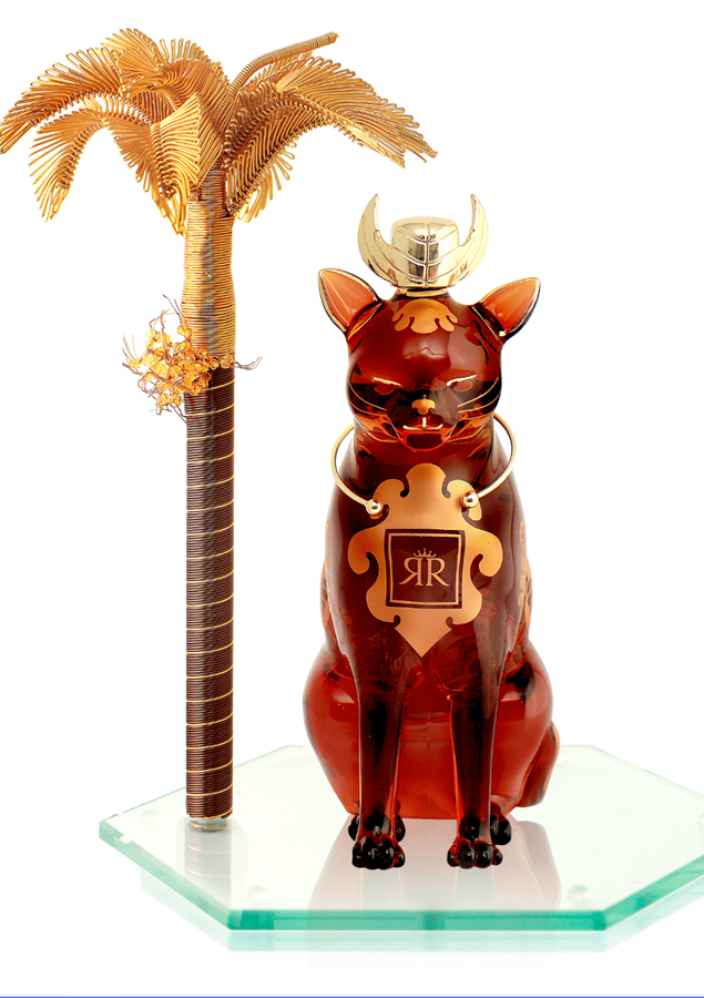 Rượu mèo vàng thuỷ tinh ngồi dưới cây cau vàng Quý Mão 2023 - Royal Rich XO Gold 23K Premium 800ml - TTDH02