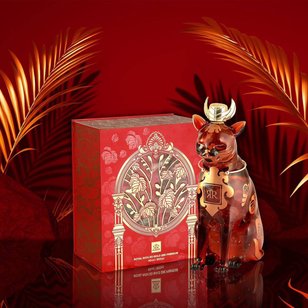 “Thời khắc Giao Thừa,Tân Xuân nghinh Cát” Rượu Linh Vật  ROYAL RICH  XO Gold 23K Premium Mèo Vàng Quý Mão là một món quà giàu ý trọn tình dành tặng những mối quan hệ đặc biệt, các đối tác, các doanh nghiệp cùng lời cầu chúc người sở hữu sự thành công,thăng quan, tiến chức, phúc lộc sum vầy trong dịp Tết 2023.